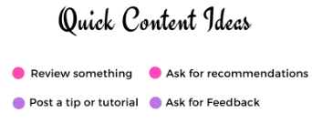 Quick Content Ideas – A quick content idea list for times when you are short on geeky ideas. There is also a section below to jot down some of your own ideas when you need it during the period of idea crisis.